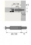 9047974 DU 319, ВВИНЧИВАЕМЫЙ ДЮБЕЛЬ, ЗАЖИМНОЙ РАЗМЕР 20 ММ, ДИАМЕТР 5 ММ, СТАЛЬ