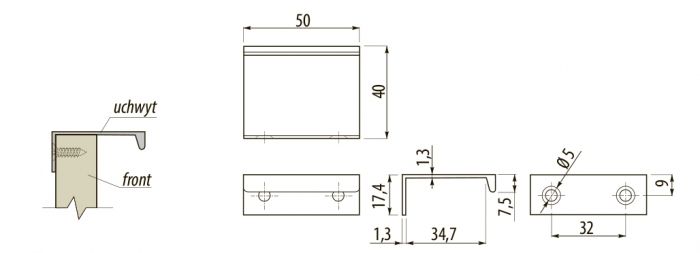 Ручка алюминиевая 32мм/50мм, UA-HEXI-05, алюминий