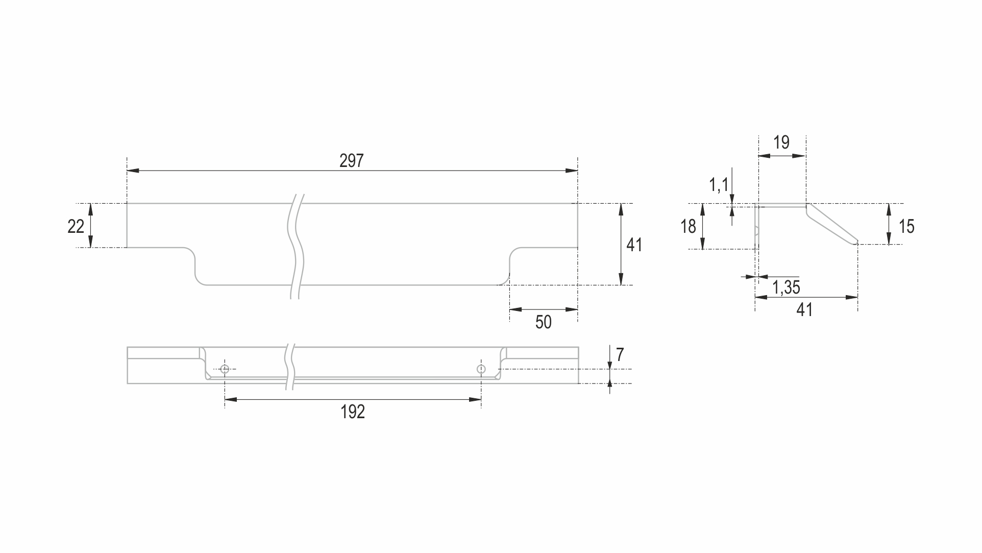 Конструкция ручки имеет детально проработанный выступ по всей длине, что создаёт эффект погружения фасада, аккуратно закрывая его края. Рифлёное покрытие в зоне захвата обеспечит эргономичное использование ручки без соскальзывания.
