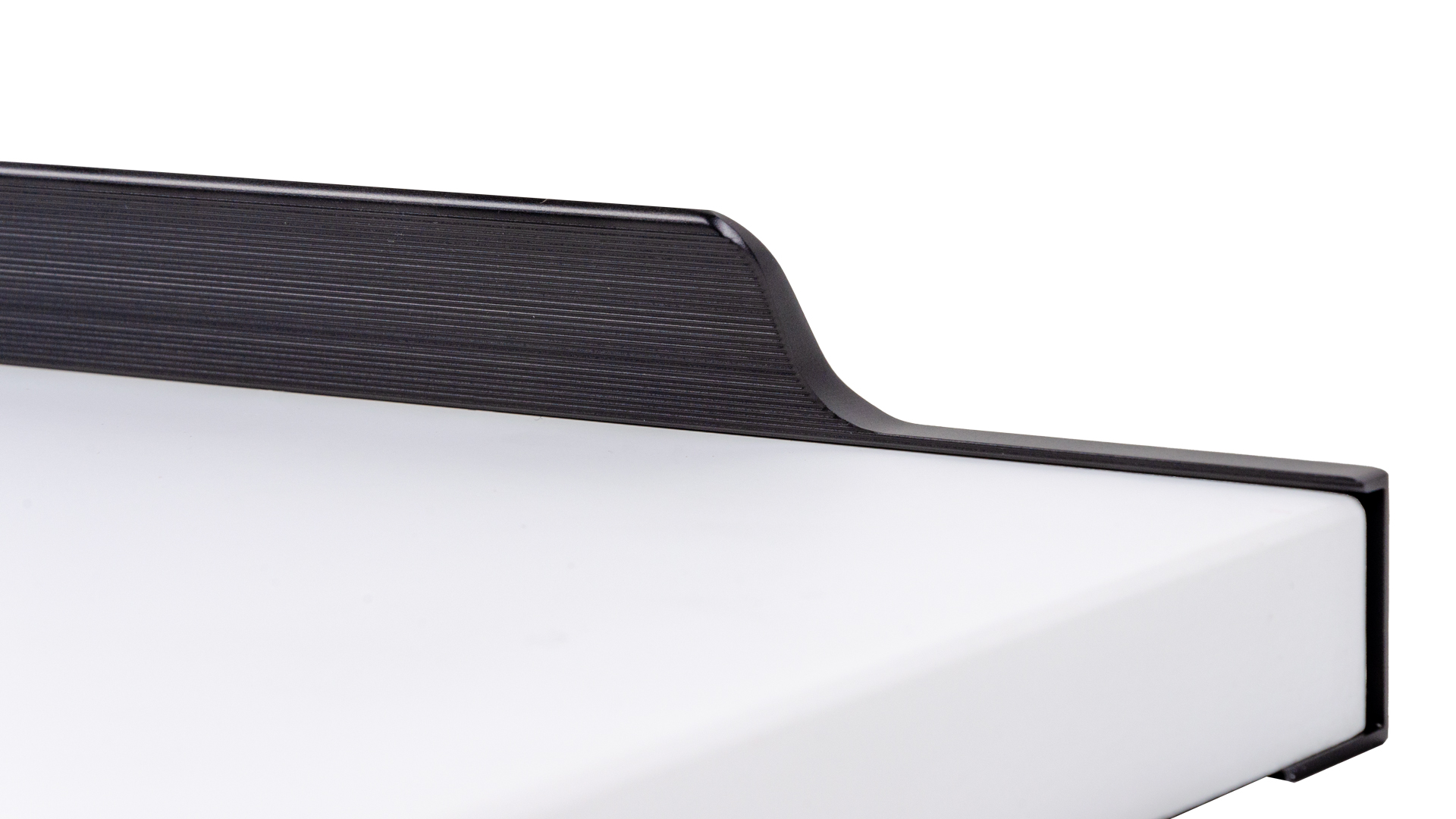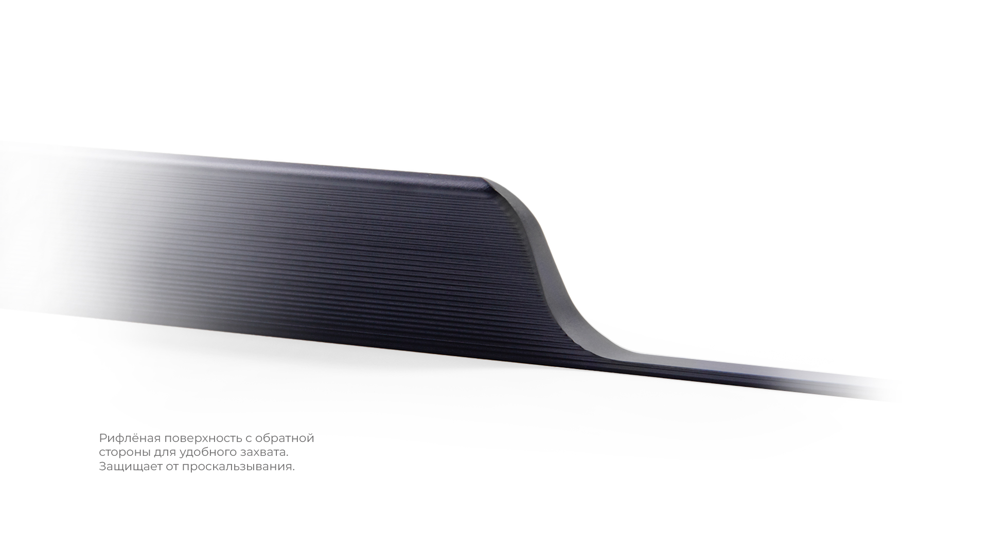 Конструкция ручки имеет детально проработанный выступ по всей длине, что создаёт эффект погружения фасада, аккуратно закрывая его края. Рифлёное покрытие в зоне захвата обеспечит эргономичное использование ручки без соскальзывания.