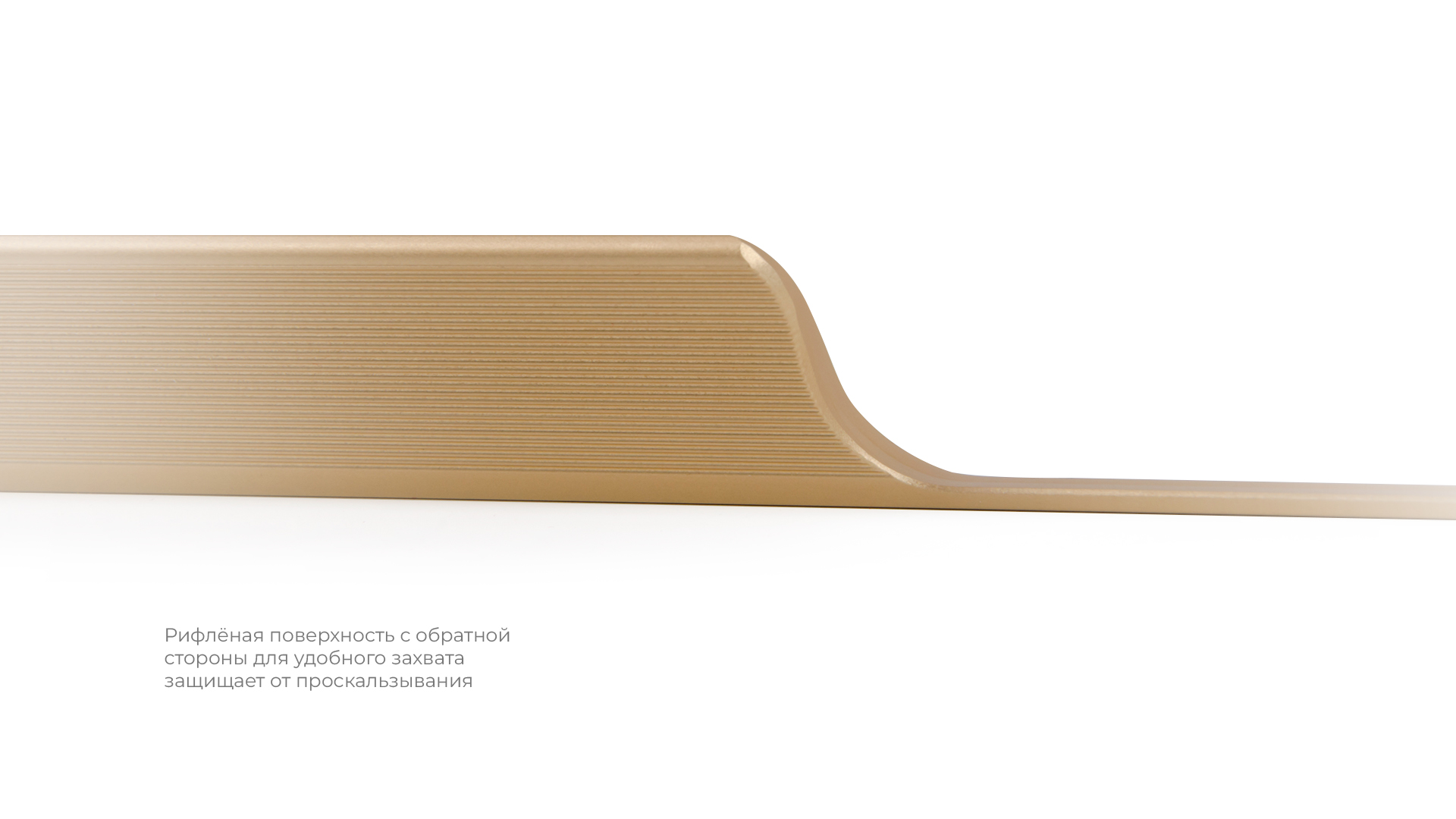 WING RT114 — торцевая ручка с изгибом из алюминия, устанавливается наложением на фасады толщиной 18-19 мм. Модель выполнена в стильном дизайне и имеет рифлёное покрытие в зоне захвата для эргономичного использования ручки без соскальзывания. За счёт обтекаемой формы RT114 идеально ложится в ладонь. Дополнительный выступ в конструкции модели создаст эффект погружения фасада, аккуратно закрывая его края.
