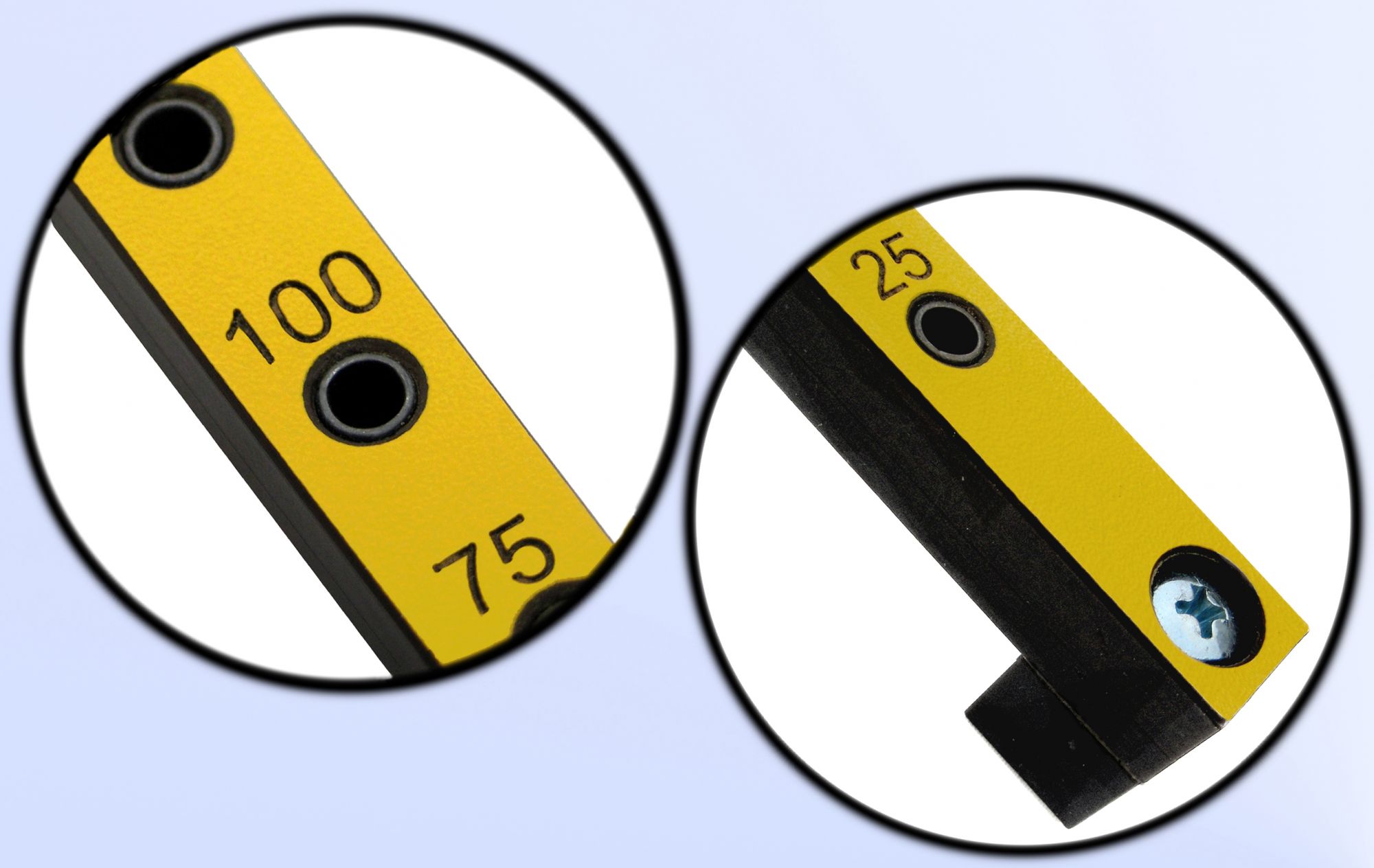 Мебельный кондуктор укороченный МК-10 предназначен для сверления отверстий 5 мм в торце плиты 16 мм с шагом отверстий 25/50 мм. (можно сверлить плиты и другой толщины с использованием переходников)