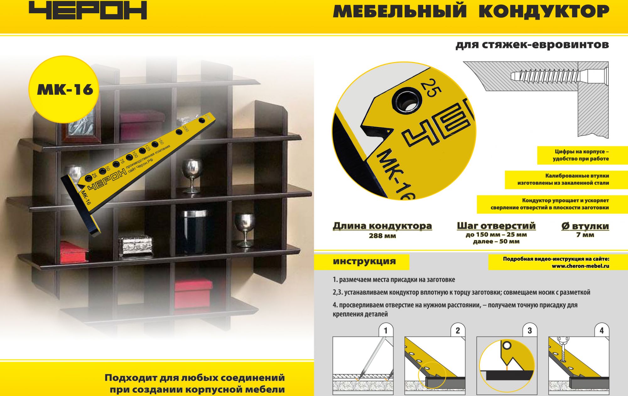Мебельный кондуктор "угольник малый" шаг 25/50 диам. втулки 7 мм МК-16