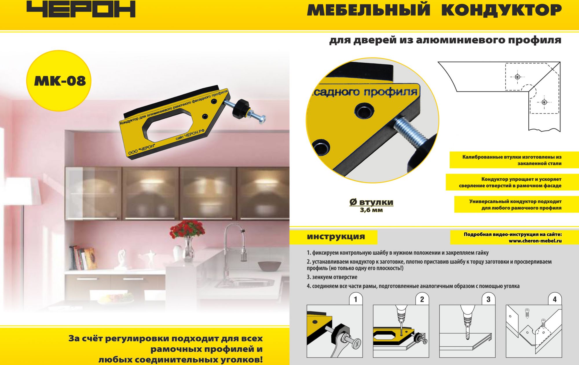 Мебельный кондуктор для сборки фасадов из рамочного фасадного алюм. профиля МК-08