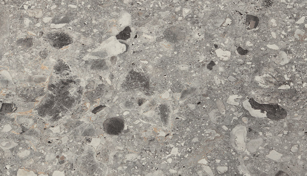 Имитации терраццо в качестве ретро-элементов снова используются в дизайне интерьеров. Терраццо Триест серый – это выразительный декор с несколько бóльшим масштабом рисунка, который за счёт своих серых оттенков очень хорошо подходит к поверхностям как в актуальных серых однотонных декорах, так и к древесным репродукциям, таким как Орех или светлый Каштан. Структура ST75 Минеральный сатин придаёт декору на ощупь бархатистость, а на вид естественную неравномерность рельефа.