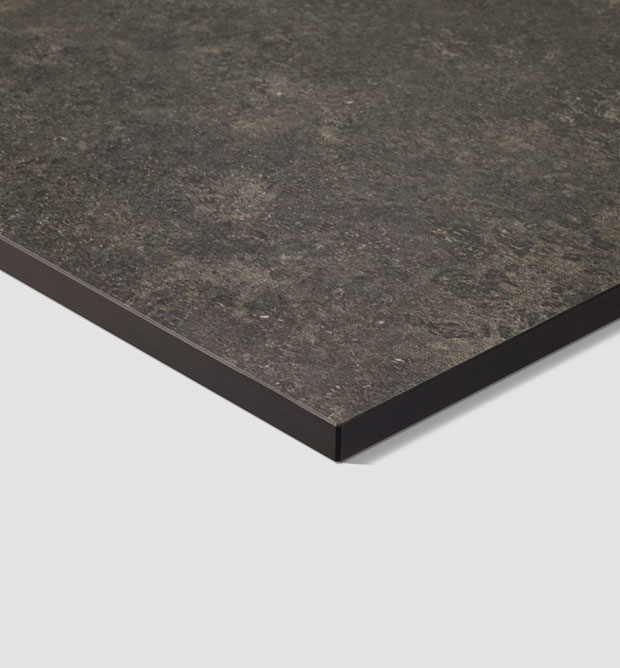 Тонкая и одновременно прочная столешница, изготовленная из компакт-плит, толщиной 12 мм (мод. 90 / 1.0) , по кромке которой по всему периметру сверху и снизу срезается фаска размером 1 х 1 мм. Внутренний слой черного, белого или светло-серого цвета идеально сочетается с декорами. Структура ST76 Минерал шероховатый матовый напоминает слегка брашированную поверхность натурального камня, испещренную мелкими впадинками, которая ощущается теплой и приятной на ощупь.